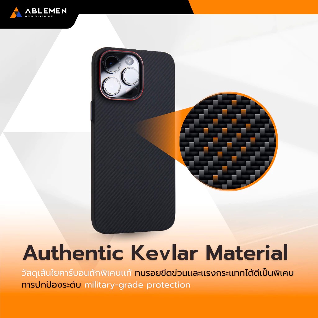 - วัสดุเส้นใยคาร์บอนถักพิเศษของเเท้ ทนรอยขีดข่วนเเละเเรงกระเเทกได้ดีเป็นพิเศษ การปกป้องระดับ military-grade protection
