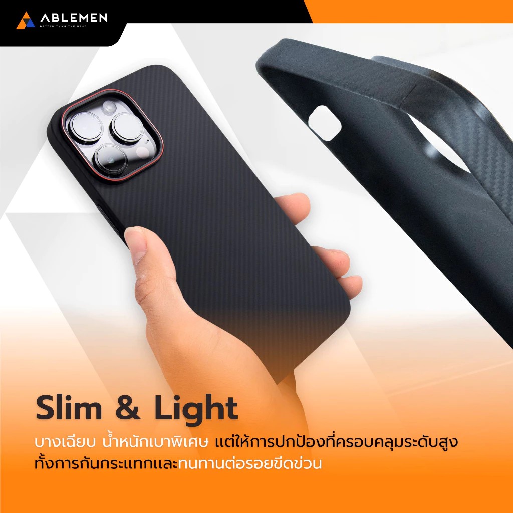 - Slim & Light เคสบางเฉียบพิเศษ เเต่ให้การปกป้องที่ครอบคลุมระดับสูง ทั้งการกันกระเเทกเเละทนทานต่อรอยขีดข่วน น้ำหนักเบาเป็นพิเศษ และรูปทรงถือง่าย