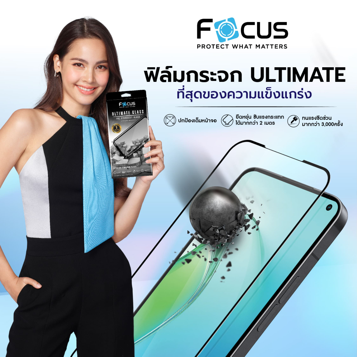 ฟิล์มกระจกอัลติเมท เต็มจอ แบบใส โฟกัส กระจกกันรอยที่แข็งแกร่งที่สุดที่เคยมี และ ดีที่สุด เพื่อปกป้องมือถือของคุณ
