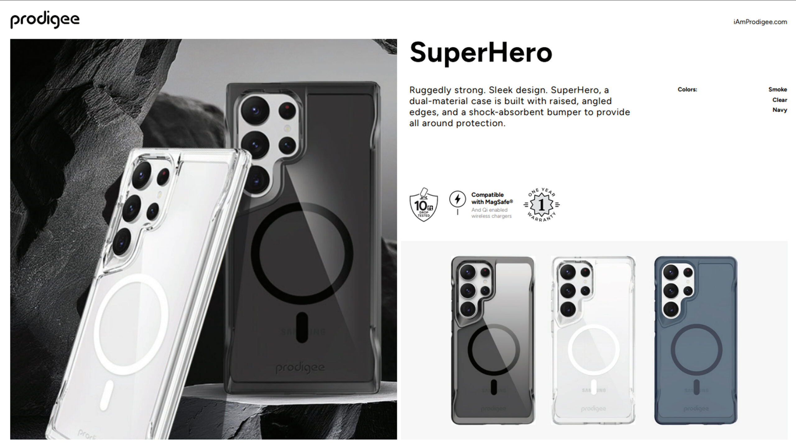 ผลิตจากโพลีคาร์บอเนตใสผสานกับ TPU ใสกันกระแทก ผ่าน drop-tested ที่ความสูงถึง 2 เมตร ได้มาตรฐาน Military grade ปกป้อง Samsung S26 series ของคุณได้อย่างมั่นใจ แถมมีวงแม่เหล็กฝังในตัว ใช้งานกับอุปกรณ์เสริมแม็กเซฟได้อีกด้วย
