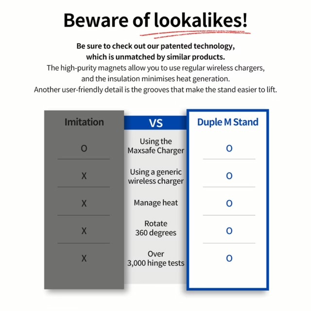 - วงแหวนแม่เหล็กสามารถกางออกมาเพื่อเป็นขาตั้งได้ทั้งแนวตั้งและแนวนอนสามารถปรับได้หลายองศา