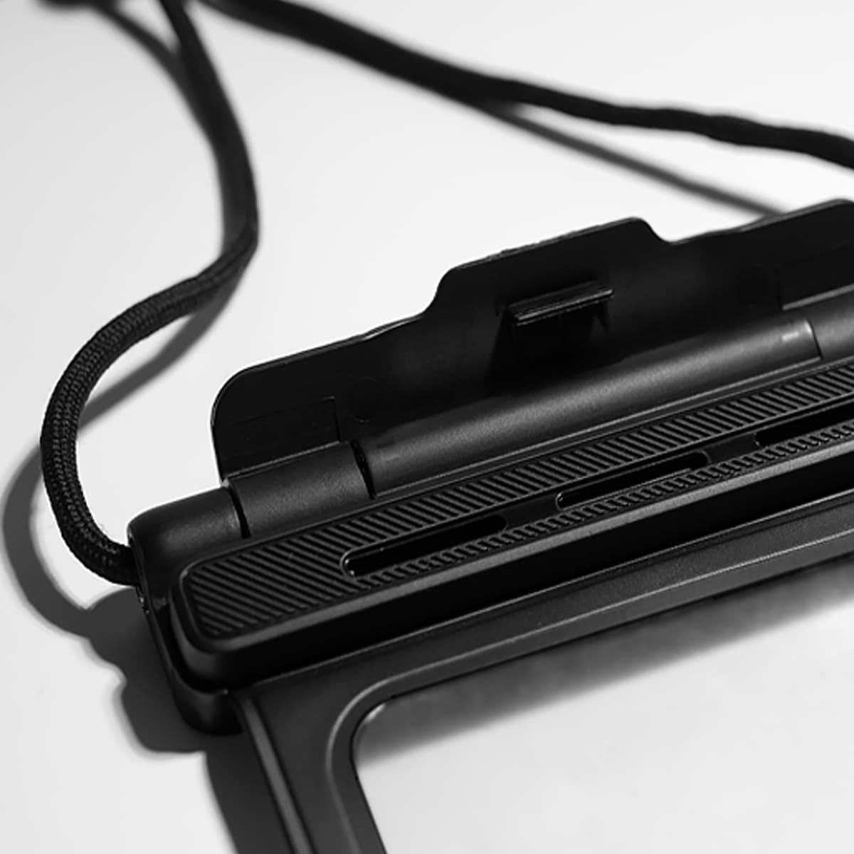 ซองกันน้ำผ่านมาตรฐานการป้องกันระดับ IPX8 สามารถอยู่ในน้ำลึกได้ถึง 25 ม. พร้อมตัวล็อกที่ออกแบบมาให้ปิดสนิท น้ำไม่เข้า แต่ก็เปิดใช้ง่าย แผ่น TPU ใสก็สามารถใช้งานทัชสกรีนได้เหมือนไม่ใส่ซอง และยังมีสายคล้องที่ปรับความยาวได้ จะคล้องคอ คล้องข้อมือก็ปรับได้ตามใจ ให้คุณพกโทรศัพท์ติดตัวไปเล่นน้ำได้ทุกที่ ไม่ต้องกลัวเปียกอีกต่อไป