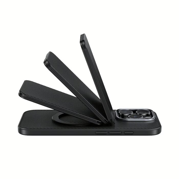 - อุปกรณ์สามารถกางออกมาเพื่อทำเป็นขาตั้งสำหรับการใช้งานทั้งแนวนอนและแนวตั้งตามองศาต่างๆได้ง่ายดาย