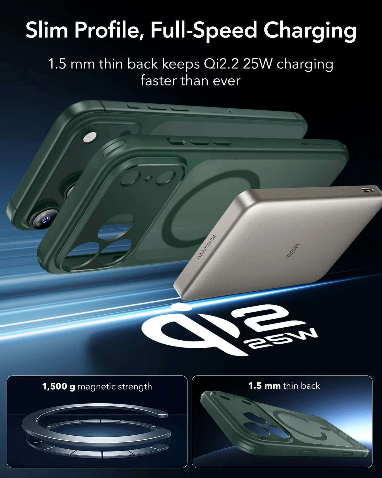 • รองรับการชาร์จมาตรฐานใหม่ Qi2.2 Fast Charge ให้กำลังชาร์จสูงสุดถึง 25W ใช้งานร่วมกับแท่นชาร์จรุ่นล่าสุดได้เต็มประสิทธิภาพ