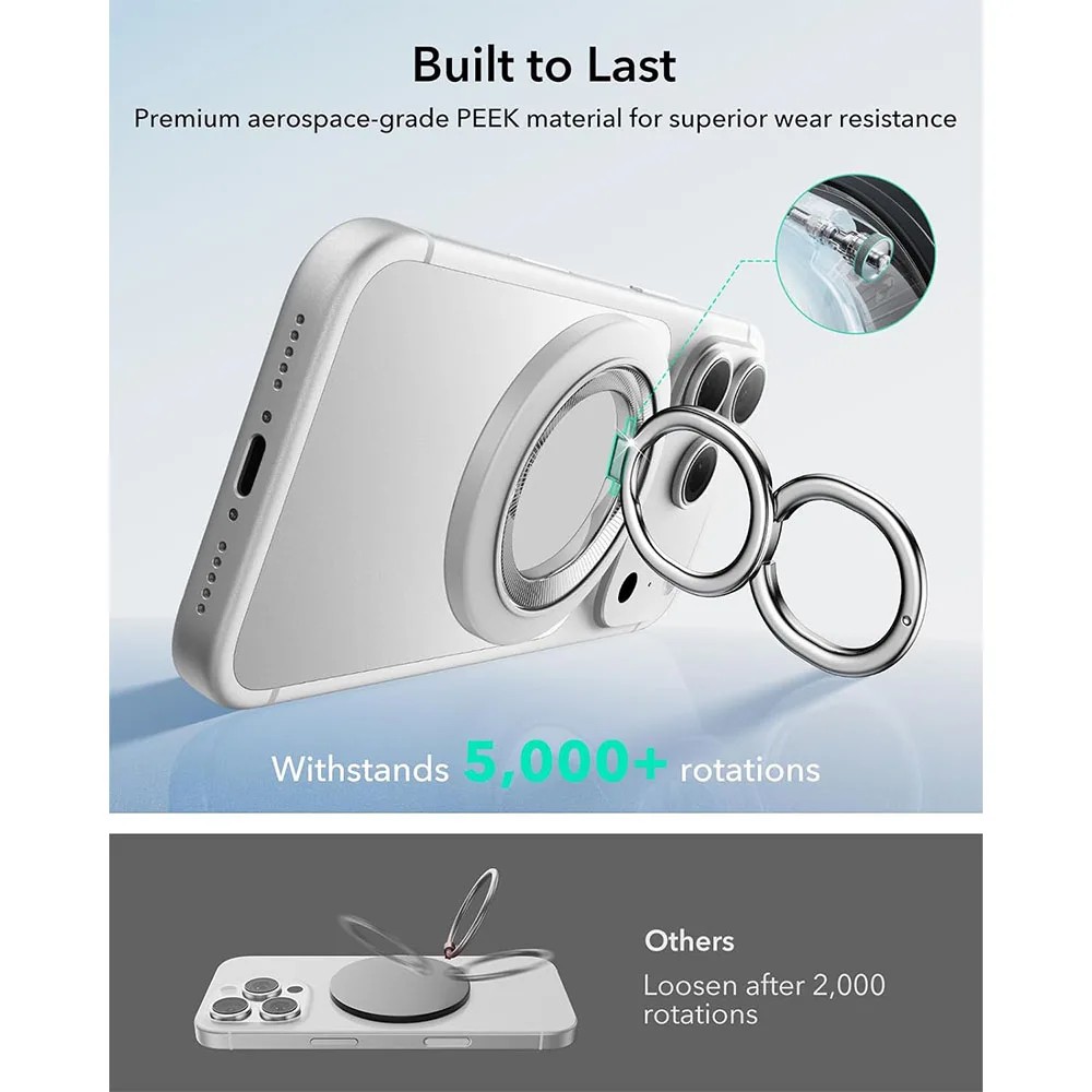 - ถอด หรือ ติดง่าย ที่ถ้าต้องการใช้งานชาร์จไร้สาย หรือเปลี่ยนเคส ก็เลื่อน ring ออกได้ง่าย โดยไม่ต้องแกะ เคสออกทั้งหมด