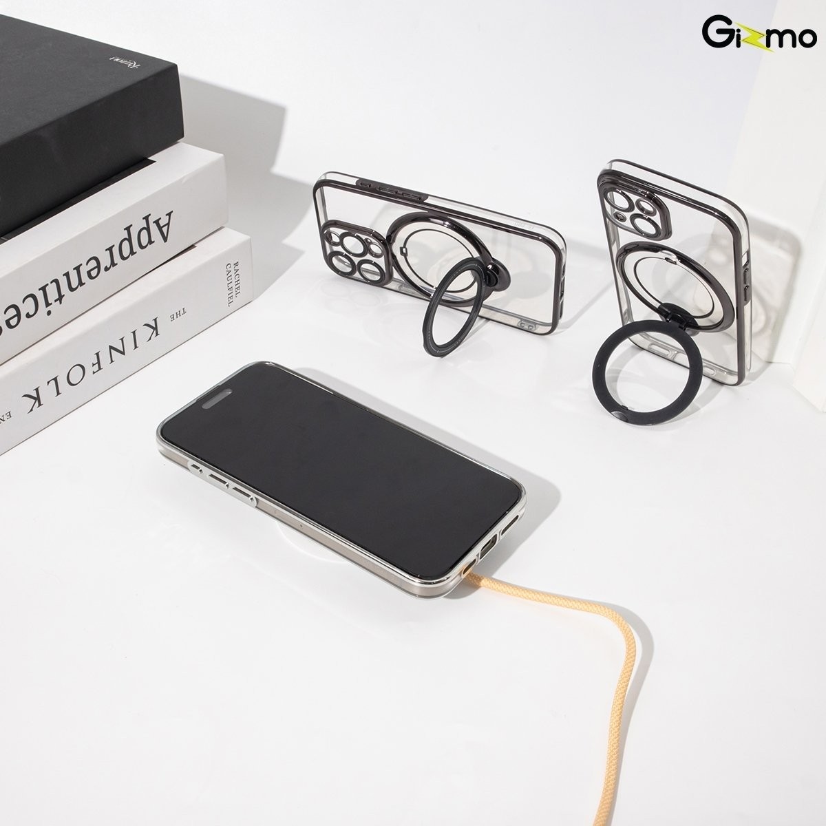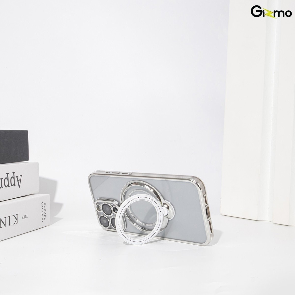 - บริเวณแผ่นแม็กเซฟยังสามารถกางออกเป็นขาตั้งโทรศัพท์