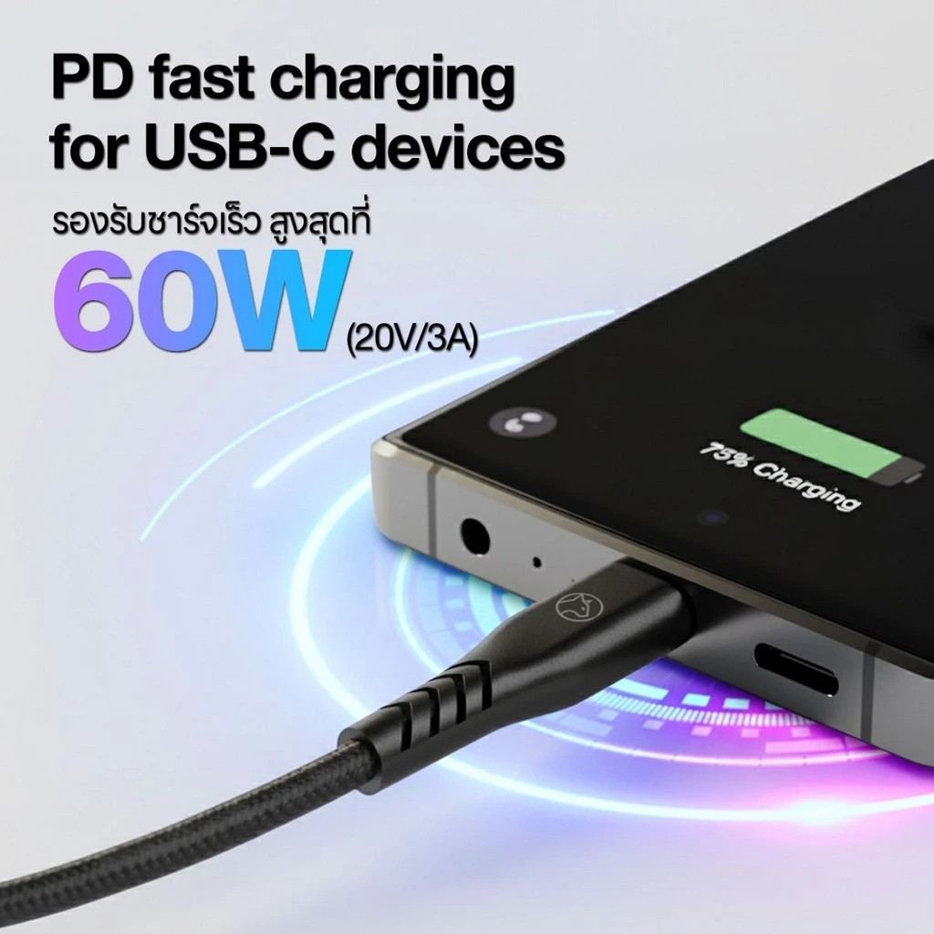 • รองรับการใช้งานชาร์จเร็วเช่น PD (Power Delivery) QC4.0 ความเร็วสูงสุด 60W (20V/3A)