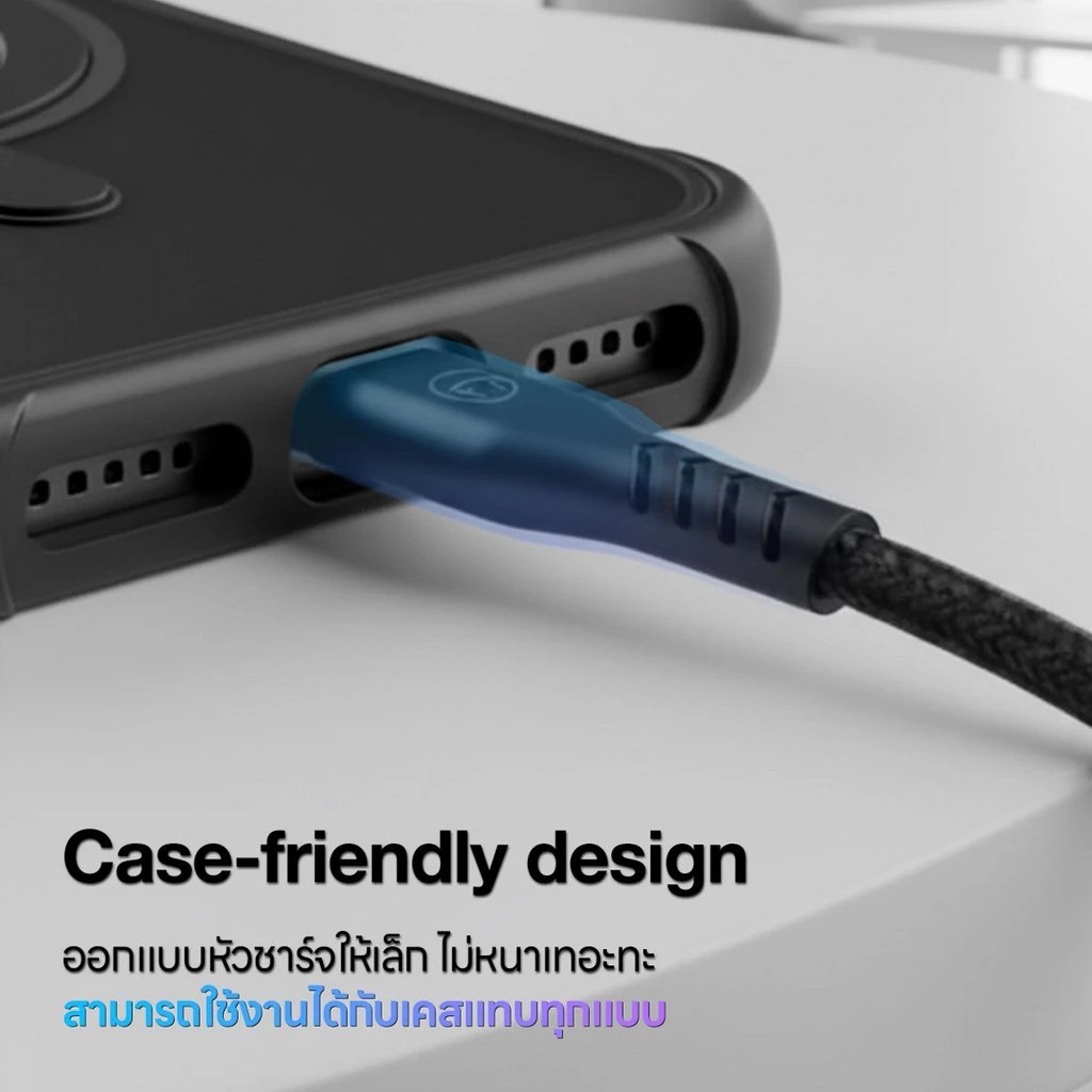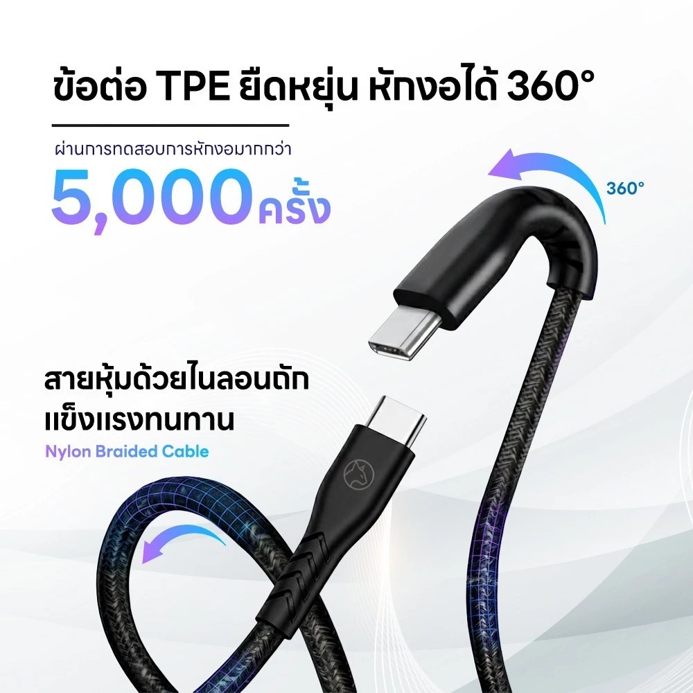 ตัวสายผลิตจาก Nylon Braided มีความยืดหยุ่น สามารถทนต่อการหักงอได้สูง หัวและข้อต่อทำจาก TPE แข็งแรง ทนต่อการหักงอได้ในทุกทิศทาง ผ่านการทดสอบมากกว่า 5,000 ครั้ง ไม่ต้องกลัวหัวหัก สายขาดอีกต่อไป นอกจากนี้ยังรับประกันสินค้าให้อีก 1 ปีเต็ม *เพียงแค่อ่านและลงทะเบียนรับสิทธิ์ผ่าน QR Code หลังกล่อง*