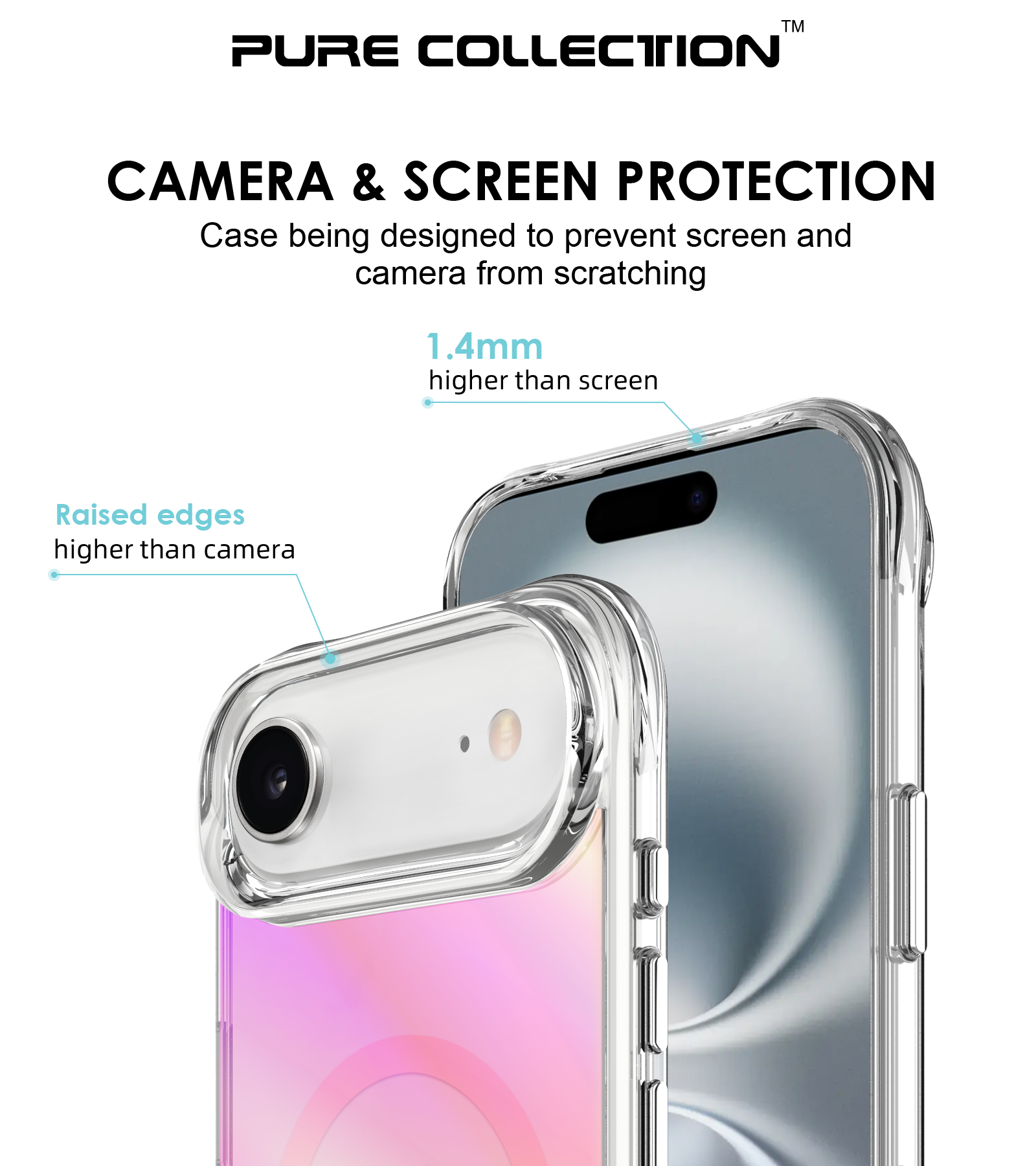 เคส iPhone 17 series GLOW (โกลว) เคสใสที่สวย โดดเด่นด้วยการเคลือบผิวพิเศษ ให้สีเหลือบรุ้ง (iridescent) ซึ่งสีจะเปลี่ยนไปตามมุมสะท้อนของแสง มองมุมไหนก็สวย ไม่จำเจ และด้วย TPU เกรดพรีเมียมจากเยอรมันที่เคลือบกันเหลือง ป้องกันรอยขีดข่วน และปกป้องเครื่องจากการกระแทกต่าง ๆ ได้อย่างมั่นใจ แถมยังมีวงแหวนแม่เหล็กสำหรับใช้กับอุปกรณ์ MagSafe ให้อีกด้วย