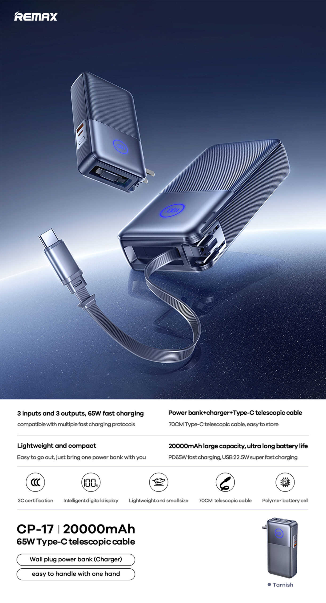 - Power bank แบบ 3 Input AC,2 Type-C และ Cable Type-C