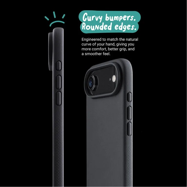 - ตัวเคสจะเน้นไปทางจับที่เข้ามือโดยขอบจะโค้งเข้าสรีระของอุ้งมือและเสริมด้วย Grip Dot จากด้านข้าง เรียกว่าจับแล้วมั่งคงมากๆ