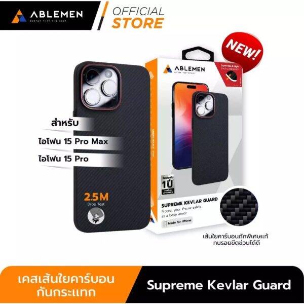 (มีสินค้าพร้อมส่ง) Ablemen Supreme Kevlar Case เคส iPhone 15 Pro Max – Black