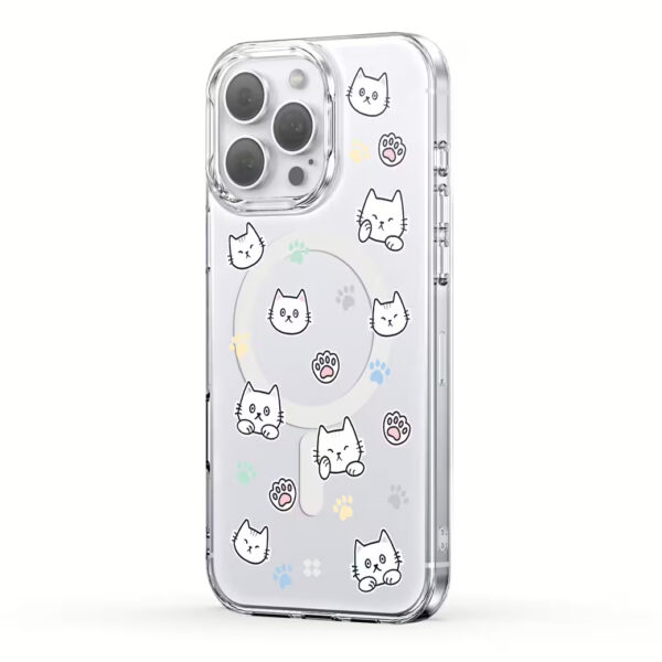 CaseStudi รุ่น Cast Collection เคสกราฟิกลายแมว ที่โชว์สีเครื่อง พร้อมดีไซน์ลวดลายที่มีสไตล์ ลายรูปแบบ IMD(In-Mold Decoration) ไม่หลุดลอก ซีดจาง หรือเป็นรอยเปื้อน ผ่านการทดสอบจาก SGS Drop Test ที่ความสูง 1.8 เมตร ด้วยการเสริมขอบมุมกันกระแทก เคสรองรับการชาร์จแบบไร้สาย และการใช้งานร่วมกับอุปกรณ์เสริม Magnetic