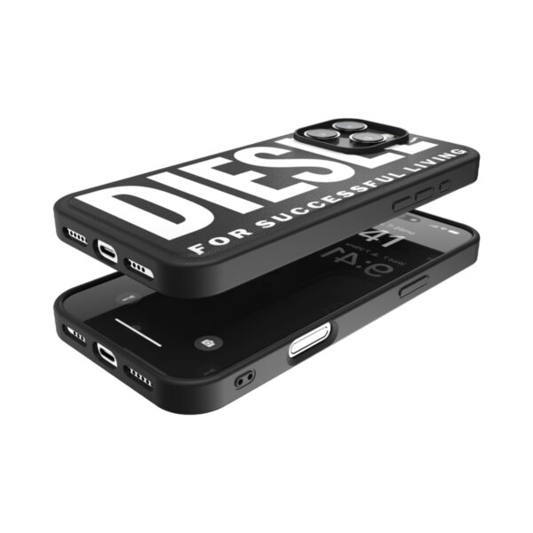Diesel รุ่น Moulded Case Core with Magsafe เคสสไตล์แฟชั่นที่ผสมผสานกับความเท่ตามสไตล์แบรนด์ โดยตัวเคสจะเป็นวัสดุ PU ที่ให้ความรู้สึกคล้ายหนัง แต่จะดูแลและทำความสะอาดได้ง่าย โดยตัวสกรีนจะเป็นวัสดุของยางที่ให้ผิวสัมผัสที่นูนออกมาช่วยเสริมในเรื่อง Grip ได้เป็นอย่างดี ส่วนวัสดุของขอบจะเป็น TPU ที่ช่วยในเรื่องกันกระแทกที่ 1.5 เมตร และตัวเคสยังทำมาแบบโค้งมนเข้ามือจับถือสบาย