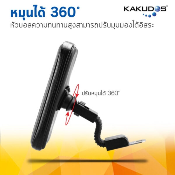 ที่ยึดโทรศัพท์ตัวนี้ เป็นแบบซองซิป ป้องกันน้ำฝน น้ำกระเด็น หรือแม้แต่เศษหิน เศษฝุ่นต่างๆ ภายนอกเป็นพลาสติกใส มองเห็นหน้าจอโทรศัพท์ชัดเจน วัสดุส่วนใหญ่ทำมาจากพลาสติกABS คุณภาพสูง แข็งแรง ทนทาน งานเนี๊ยบมาก รองรับโทรศัพท์ทุกรุ่นที่มีความกว้างหน้าจอ 4 ถึง 6.3 นิ้ว ติดตั้งง่าย ตำแหน่งเดียวกับก้านกระจกมองข้าง นอกจากนี้ยังสามารถหมุนโทรศัพท์ได้รอบทิศทาง 360 องศา วางโทรศัพท์ได้ทั้งแนวตั้งและแนวนอน