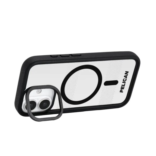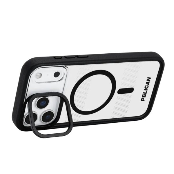 Protector with MagSafe and Stand คือเคสกันกระแทกคุณภาพสูงจาก Pelican, แบรนด์ผู้เชี่ยวชาญด้านการผลิตกล่องนิรภัยกันกระแทกจากสหรัฐอเมริกา ดีไซน์ในซีรีย์ Protector มาพร้อมฟังก์ชันเพิ่มเติม ด้วยการติดตั้งขาตั้งที่บริเวณกรอบเลนส์กล้อง เพื่อให้สามารถปรับใช้งานในแนวนอนได้ ตัวเคสผลิตจากวัสดุยาง TPU ที่ขอบและพลาสติก Polycarbonate ในส่วนแผ่นหลัง เพื่อเพิ่มความแข็งแรงและปกป้องอุปกรณ์ได้อย่างเต็มประสิทธิภาพ อีกทั้งยังใช้วัสดุรีไซเคิลในการผลิต เพื่อความเป็นมิตรต่อสิ่งแวดล้อม เพิ่มความพิเศษด้วยการเคลือบ Antimicrobial Technology ช่วยลดการเติบโตของจุลินทรีย์ สร้างความมั่นใจในเรื่องสุขอนามัยต่อผู้ใช้งาน นอกจากนี้ยังมาพร้อมวงแหวนแม่เหล็กด้านหลังสำหรับรองรับการใช้งานกับอุปกรณ์ MagSafe ได้อย่างไร้รอยต่อ