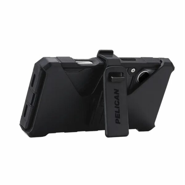 Pelican Shield with MagSafe คือสุดยอดเคสกันกระแทกจากแบรนด์อุปกรณ์นิรภัยที่ขึ้นชื่อเรื่องความทนทานสูงสุด โดยออกแบบมาเพื่อปกป้องตัวเครื่องอย่างเหนือชั้น ด้วยขอบเคสที่ใช้วัสดุซ้อนกันถึง 2 ชั้น เสริมความแข็งแกร่ง พร้อมจุกยางปิดบริเวณพอร์ตชาร์จและปุ่มปรับด้านข้าง ช่วยเพิ่มการป้องกันแบบรอบด้าน 360 องศา นอกจากนี้ ยังมีการปรับดีไซน์ให้ตัวเคสบางลง เพิ่มความเรียบหรู ให้ดูทันสมัยกว่าเดิม พร้อมกับการถอดใส่ที่สะดวกขึ้น มาพร้อมที่หนีบเข็มขัดในตัวเพื่อความคล่องตัวในการพกพา และยังสามารถพับใช้งานเป็นขาตั้ง (Kickstand) ได้อีกด้วย ตัวเคสผลิตจากวัสดุรีไซเคิลที่เป็นมิตรต่อสิ่งแวดล้อม พร้อมทั้งออกแบบด้านหลังให้รองรับการใช้งานร่วมกับอุปกรณ์ MagSafe ด้วยวงแม่เหล็กที่ติดตั้งไว้อย่างลงตัว
