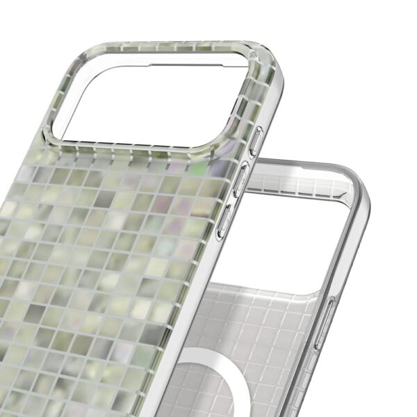 TILE (ไทล์) เคสลายกระเบื้องโมเสก ที่เปลี่ยนสีไปตามมุมของแสงที่ตกกระทบ สวยโดดเด่น ลายไม่ซ้ำ จำมุมไม่ได้กันเลยทีเดียว แถมยังกันกระแทกระดับ Military grade อีกด้วยเคสไฮบริดที่ผสานโพลีคาร์บอเนตเข้ากับขอบ TPU กันกระแทก ผ่านการ drop-tested ที่ความสูงถึง 2 เมตร ได้มาตรฐาน Military grade ปกป้อง iPhone 17 series ของคุณได้อย่างมั่นใจ แถมมีวงแม่เหล็กฝังในตัว ใช้งานกับอุปกรณ์เสริมแม็กเซฟได้อีกด้วย