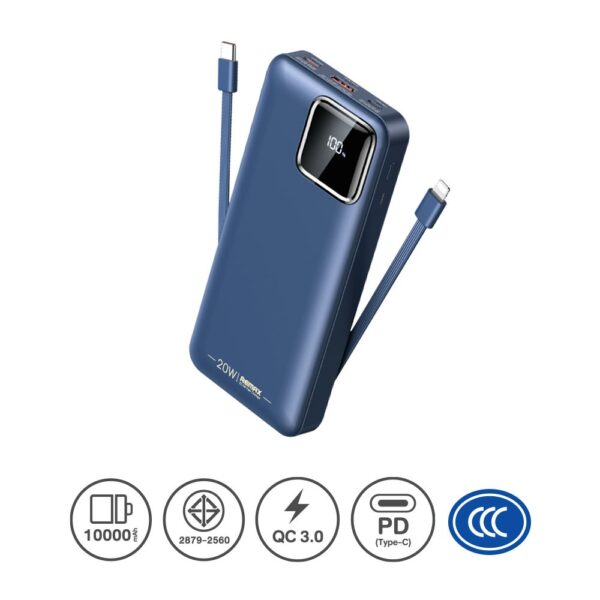 (มาตรฐาน CCC) Remax Power Bank 10000 mAh Type-C (RPP-652) – Blue