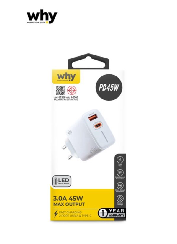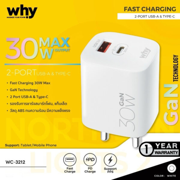 (มีสินค้าพร้อมส่ง) Why Nothern Lights2 Wall Charger 30W (WC-3212) – White