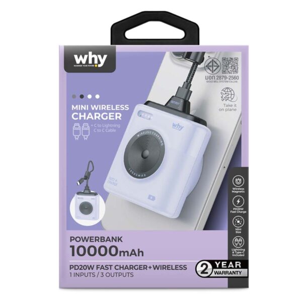 (มาตรฐาน ccc) Why Pico Powerbank 10000 mAh PD 22.5W (PB-113E) – Purple