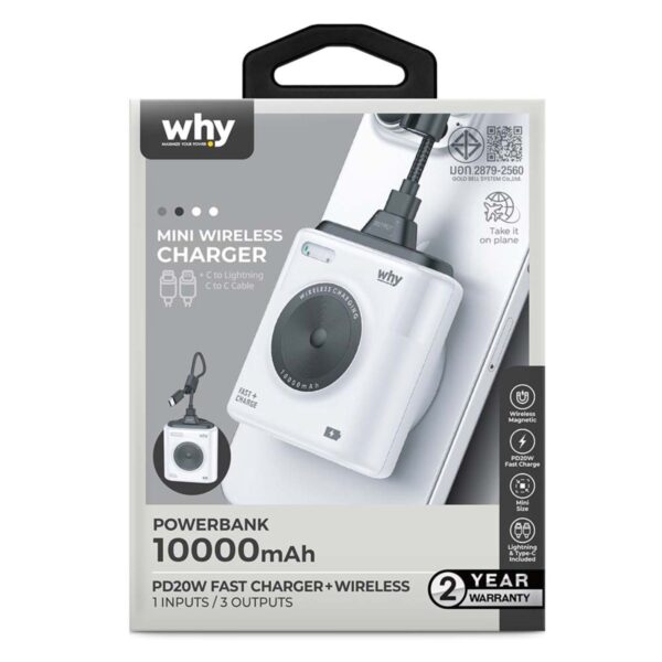 (มาตรฐาน ccc) Why Pico Powerbank 10000 mAh PD 22.5W (PB-113E) – White
