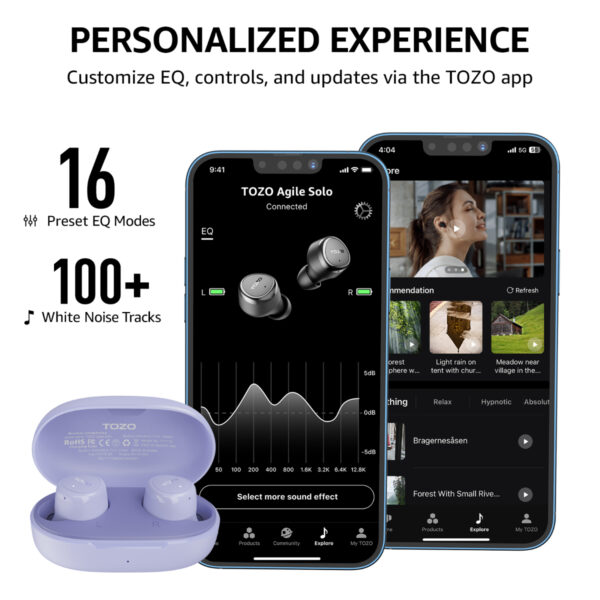 TOZO Agile Dots เป็นหูฟังไร้สายที่มีน้ำหนักเบาเพียง 3.7 กรัม ออกแบบมาเพื่อความสะดวกสบายในการใช้งานทั้งการฟังเพลงและการโทร โดยเฉพาะผู้ที่มีหูขนาดเล็กหรือชอบออกกำลังกาย ตัวหูฟังมีการกันน้ำ IPX6 พร้อมระยะเวลาใช้งานต่อเนื่องสูงสุด 5.5 ชั่วโมง และใช้เคสชาร์จให้ใช้งานได้ถึง 22 ชั่วโมง นอกจากนี้ยังสามารถปรับแต่ง EQ ผ่านแอป TOZO เพื่อให้ได้เสียงที่เหมาะสมกับความต้องการ ใช้งานง่ายด้วยการควบคุมสัมผัสและเชื่อมต่ออัตโนมัติผ่าน Bluetooth 5.3 พร้อมไมโครโฟนตัดเสียงรบกวนในตัว