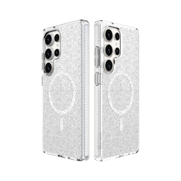 SUPERSTAR (ซุปเปอร์-สตาร์) เคสที่เปล่งประกายระยิบระยับ ด้วยกากเพชรที่อยู่ในเนื้อเคส ยิ่งโดนแสงยิ่งสวย ให้ลุคหรูหรา เหมาะกับสาว ๆ สายแกลม สายแฟชั่นสุด ๆ นอกจากนี้ยังผ่านการ drop-tested ที่ความสูงถึง 2 เมตร ปกป้อง Galaxy S25 Ultra ของคุณได้อย่างมั่นใจ และมีวงแม่เหล็ก รองรับการใช้งานร่วมกับอุปกรณ์ MagSafe อีกด้วย