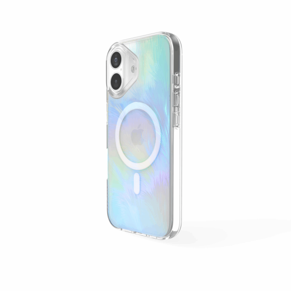เคส iPhone 16 series GLOW UP (โกลว-อัป) เคสใสที่สวย โดดเด่นด้วยการเคลือบผิวพิเศษ ให้สีเหลือบรุ้ง (iridescent) ซึ่งสีจะเปลี่ยนไปตามมุมสะท้อนของแสง มองมุมไหนก็สวยไม่ซ้ำใครและด้วยดีไซน์แบบ Triple-material ผสมผสานทั้งโพลีคาร์บอเนต, TPU และ TPE เข้าด้วยกัน ทำให้ Glow Up เป็นเคสรุ่นท๊อปในเรื่องกันกระแทก แถมยังมีวงแหวนแม่เหล็กสำหรับใช้กับอุปกรณ์ MagSafe ให้อีกด้วย