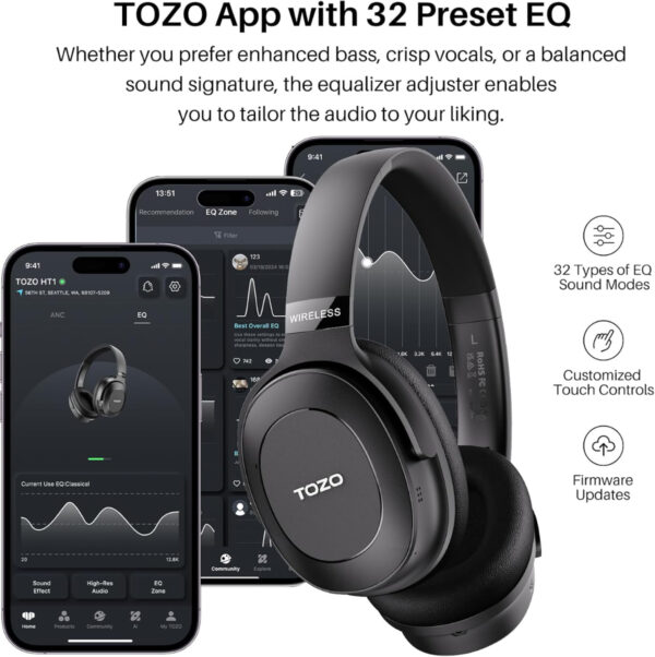 TOZO HT1 Wireless Over Ear Headphone – Black