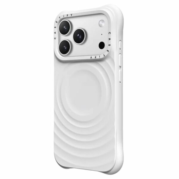 เคสนุ่มนิ่มน่าจับระดับพรีเมียม Ripple Case จาก Casetify ผลิตจากวัสดุซิลิโคนคุณภาพสูง ดีไซน์คล้ายลอนคลื่น ช่วยให้จับถนัดมือ-ไม่ลื่น สนุกทุกเวลาสัมผัส ถึงจะนิ่มแต่ไม่อ่อน เพราะกันกระแทกจากการตกที่สูงถึง 2 เมตร ทนทานระดับมาตรฐานกองทัพสหรัฐฯ (2x MIL-STD-810G) พร้อมรองรับการชาร์จไร้สายและ MagsafeCasetify Ripple Case (Magsafe) เคส iPhone 17 Pro Max – White